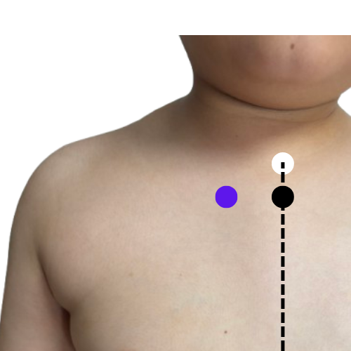 そこから親指横幅1本分下が黒色●(華蓋穴です)
